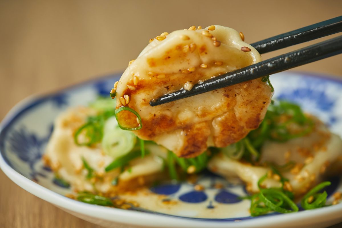 スープたっぷりの小籠包の皮に焦げ目をつけて、さらに香ばしさもアップ。一口でいきたいところですが、中から熱々のスープが出てきますで、ご注意を!