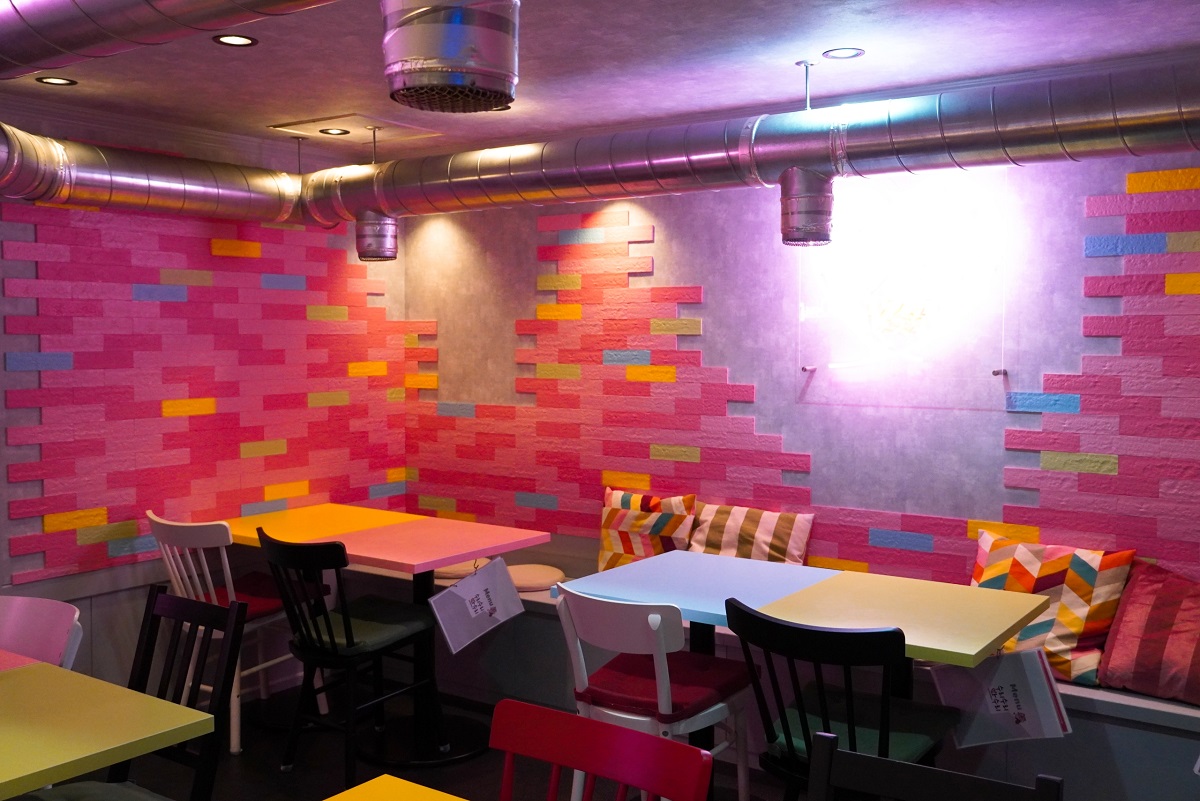 ピンク系でまとめた壁紙やパステルカラーのテーブルがかわいらしい店内は、カフェのような雰囲気です。