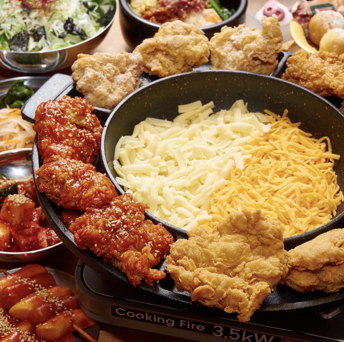 フライドチキンを2種類のチーズにからめて食べる「チョアチキン」(1408円、2人前~)。たっぷりのチーズとチキンが堪能できます。