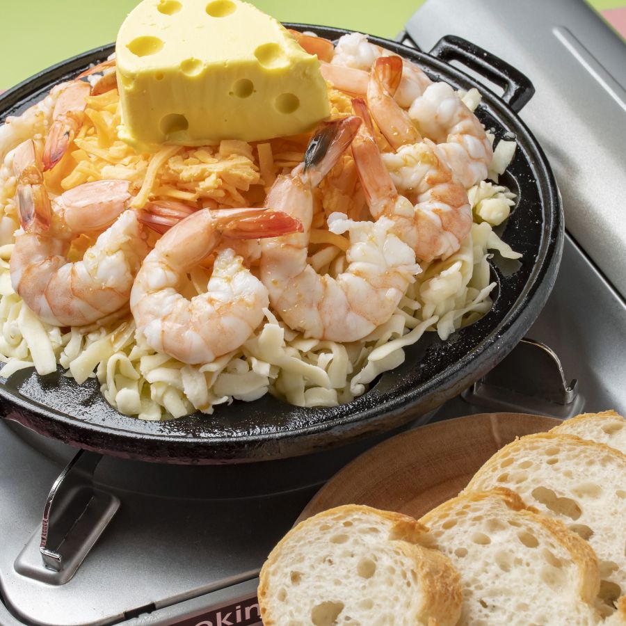 新登場のチーズメニューは、関西初の「海老チーズフォンデュ」(1408円、2人前~)。たっぷりのモッツアレラ&チェダーチーズとトッピングのチーズムースで、チーズ好きにはたまらないおいしさです。