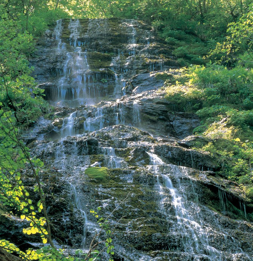 雲井の滝は、切り立った崖から三段になって流れ落ちる大迫力の滝です。奥入瀬渓流にいくつもある滝の中でも見応え抜群。