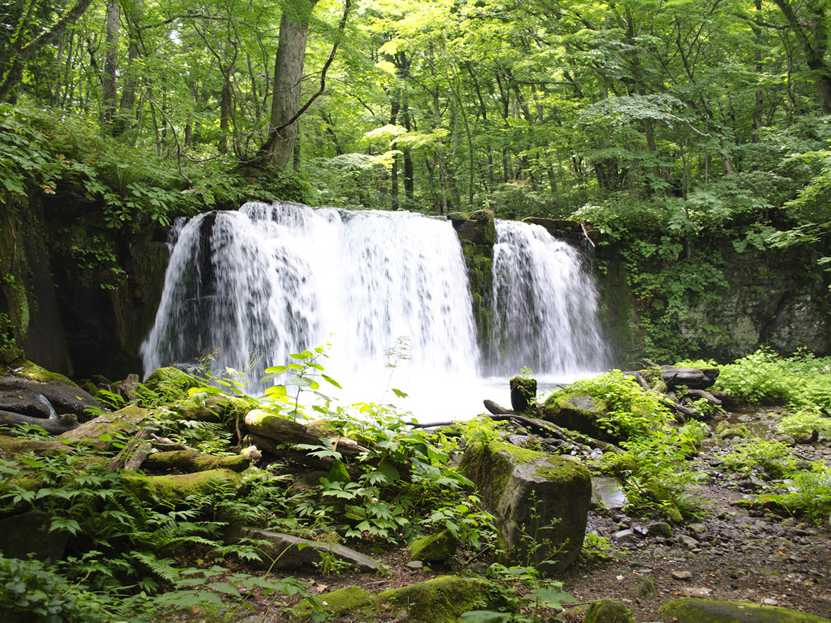 十和田湖を源にした奥入瀬川の渓流で、国の特別名勝と天然記念物に指定されています。十和田湖畔の子ノ口から焼山まで約14kmの一本道には手つかずの自然がたくさん残り、壮大な滝や迫力の清流などの躍動感あふれる水の流れや、苔に覆われた樹木や巨岩とあいまって、神秘的な景観を生み出します。見学は焼山を起点に子ノ口まで、渓流沿いに整備された散策路を往復するのが基本ですが、シャトルバスが運行しているので、時間と体力に合わせて徒歩とバスを組み合わせるといいでしょう。まずは必ず押さえておきたいみどころをチェック。「雲井の滝」「白糸の滝」「九段の流れ」「銚子大滝」は必見ポイントです。なんといっても新緑が美しい5月下旬〜6月上旬がベストシーズンですが、10月中旬〜下旬の紅葉の季節もおすすめです。