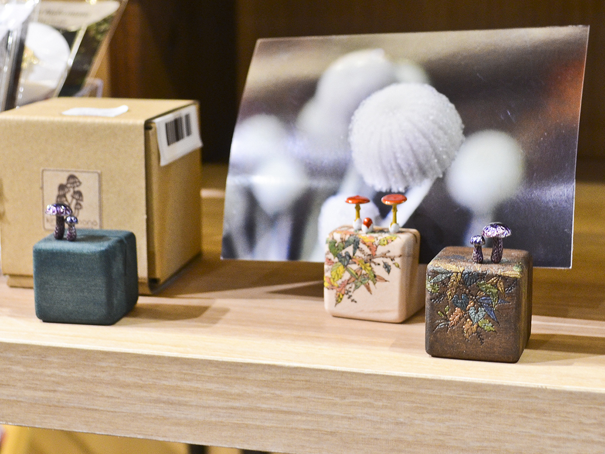 小さいけれど精巧で緻密なきのこのオブジェ「奥入瀬渓流の景色」3620円〜。かわいい大きさとナチュラルな雰囲気で、お部屋にちょこんと置いても素敵です。