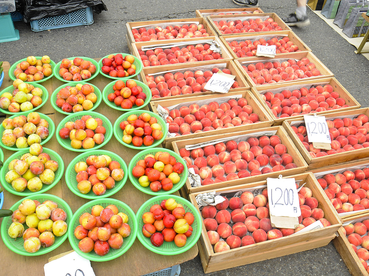 海のイメージが強い八戸市ですが農産物の生産も盛ん。プラムや桃がずらりと並んでいます。すぐお隣の南部町は「北のフルーツ王国」として有名なんです。