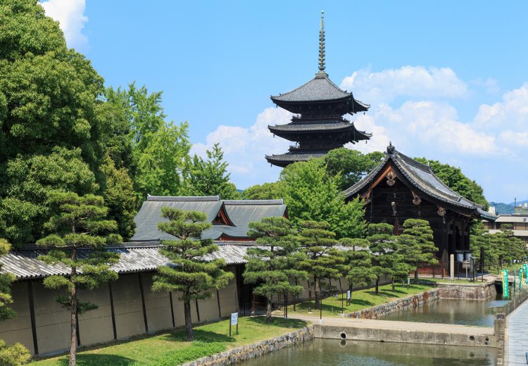最後に、弘法市が行われる東寺についてご紹介します。世界遺産の東寺は、多くの観光客が訪れる京都屈指の人気寺院。境内には国宝や重要文化財の伽藍が多数あり、見ごたえ十分です。