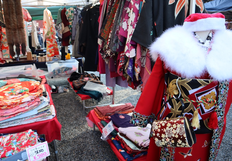 弘法市では着物を扱う店もあちこちに。おしゃれなアンティーク着物など、思いがけないお宝が見つかりそうですね。なんと、一着100円から販売する店舗もあるので、着物にチャレンジしてみたいと思っている人にもぴったりですよ。