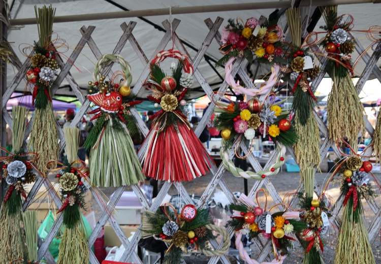12月ということで、注連縄などのお正月用品を扱うお店もありました。年末ならではの光景ですね。今回は、色や飾りもかわいいものを発見! 日常生活に馴染むデザインがすてきです。
