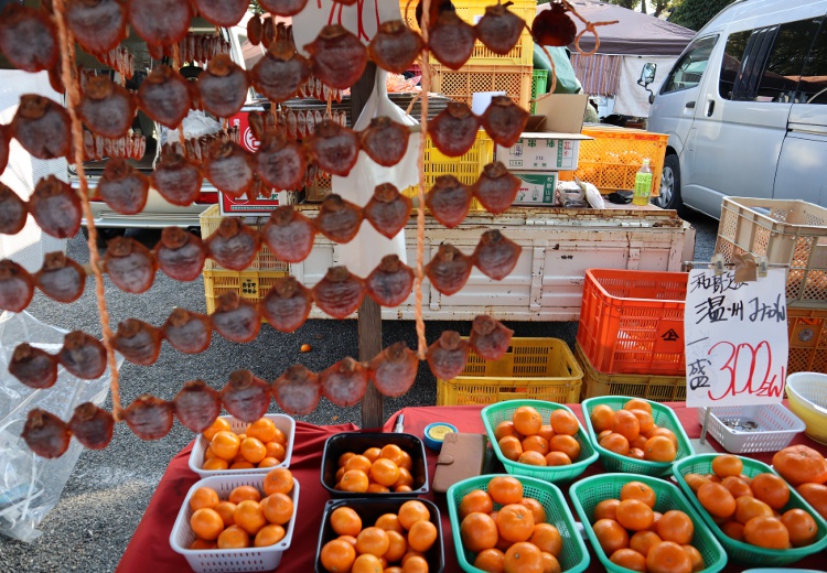 こちらではお正月に飾る干し柿や、冬に食べたいみかんを販売。産地の和歌山県から参加しているとのこと。リーズナブルな価格も魅力です。