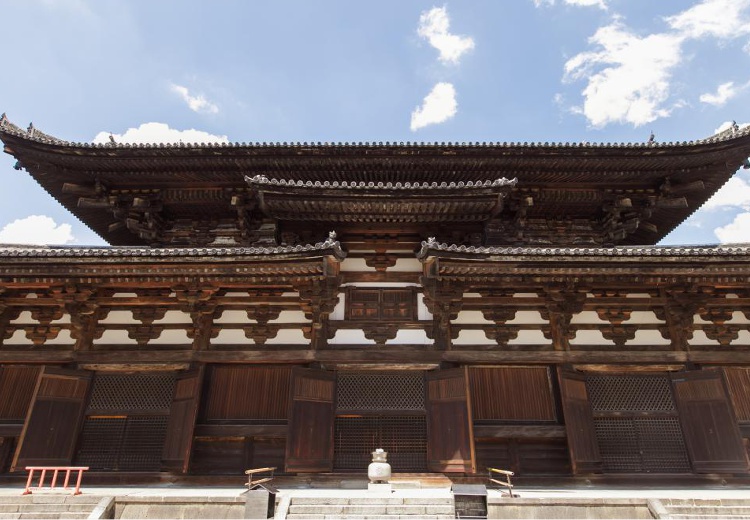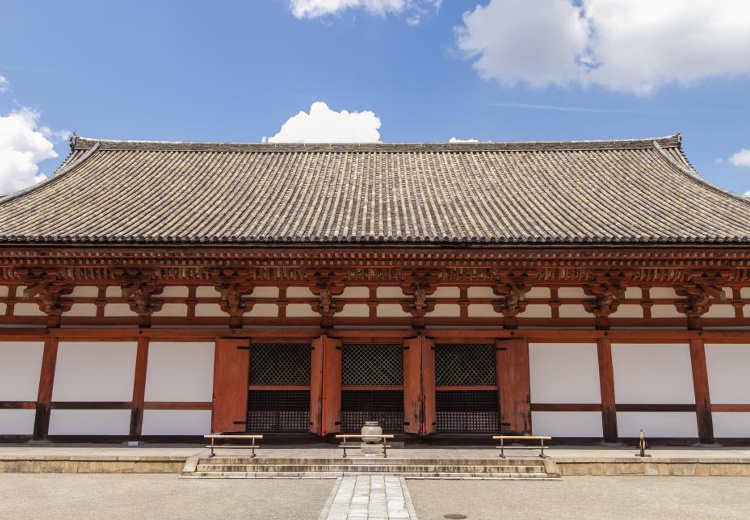 こちらは、五重塔と同じく国宝に指定される金堂。東寺の本堂にあたる建物で、慶長8年(1603)に再建されたものだとか。重厚感と貫禄がありますね。お堂の中には、高さ約3m(!)の薬師三尊像が安置されています。