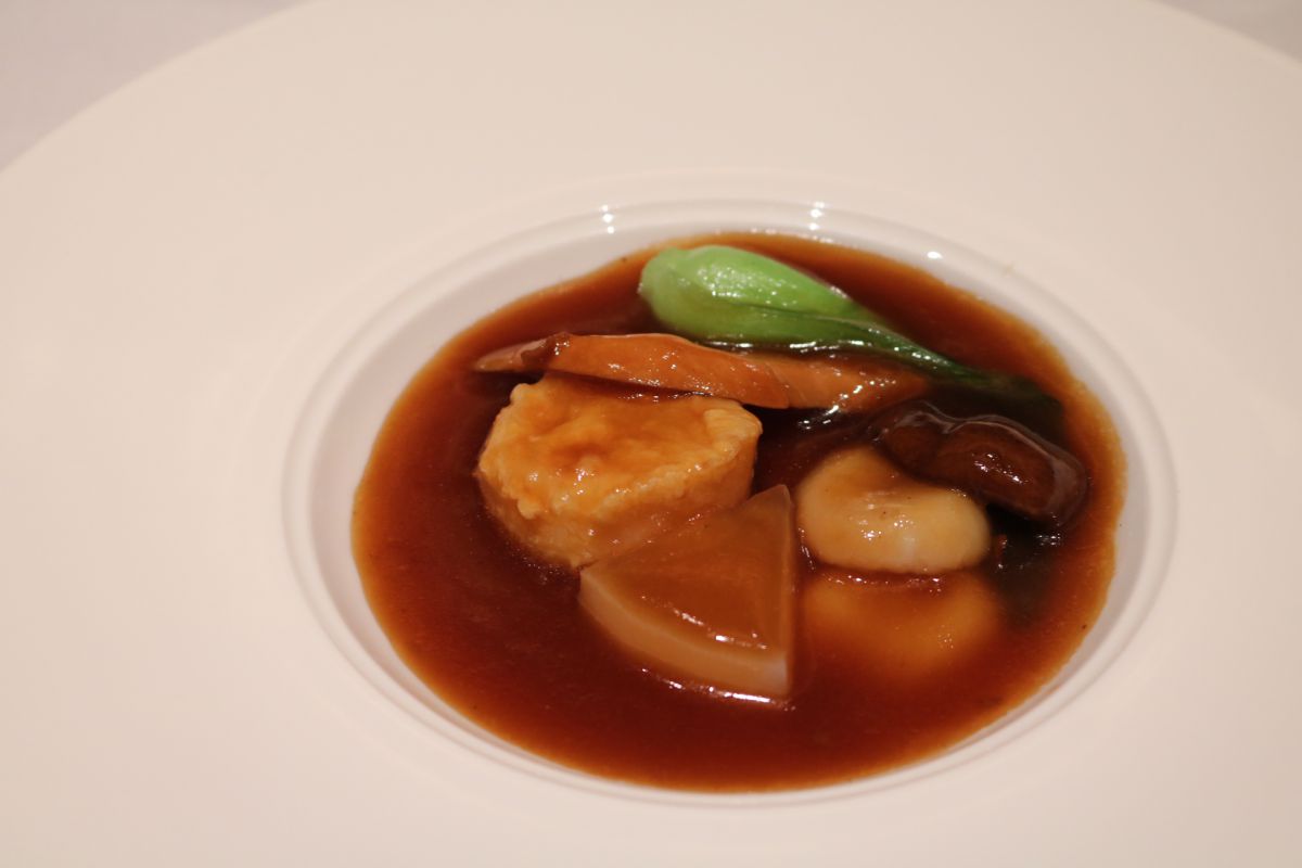 実食!メインディッシュから「鮑と帆立貝の紹興酒と鎮江酢煮込み