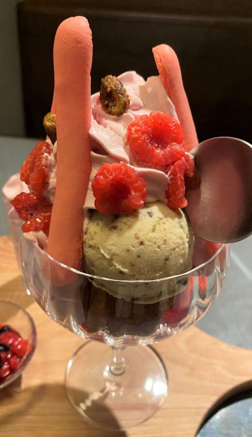 ピスタチオのアイスクリームは濃厚で味が濃く、それに対してベリーのアイスは酸味のあるさわやかさが印象的!