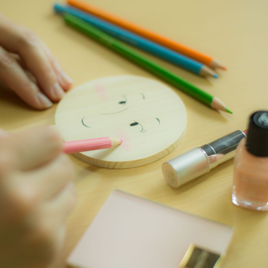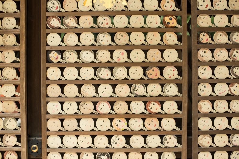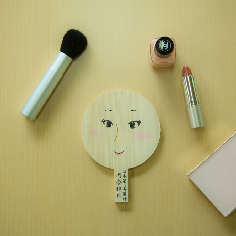鏡絵馬には目や鼻、口など顏のパーツがあらかじめ描かれており、こちらに普段使っている化粧品などを使って美しく化粧を施します。絵馬の裏には願意と自分の名前を書いて奉納すれば、外見だけでなく、内面も磨かれて美しくなれるのだとか。