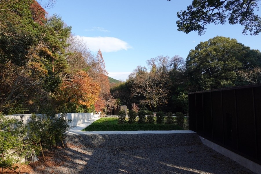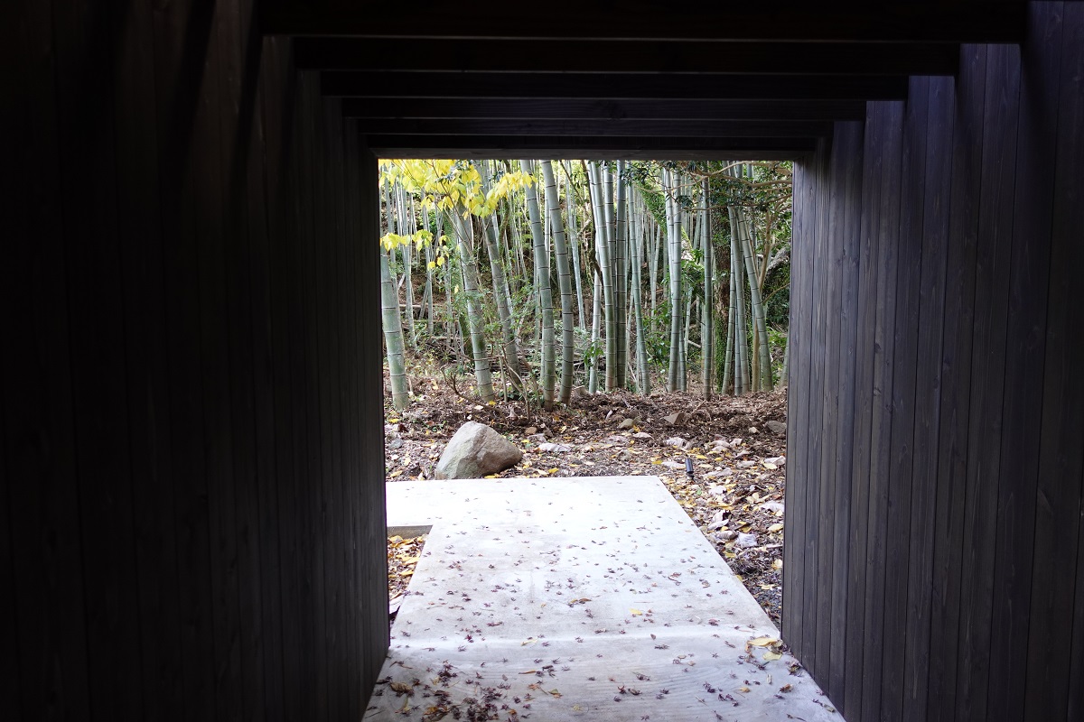 この施設全体がそうなのですが、自然の景観を生かした建築で、息をのむ美しさなんです…。天井から降り注ぐ木漏れ日、素敵ですよね。