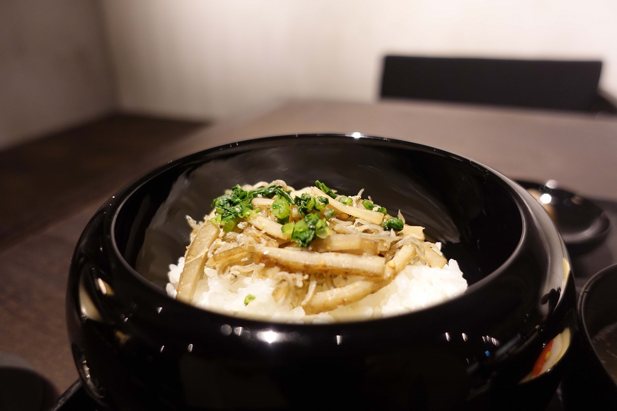 なかでも、わたしが一番楽しみにしているのが、このご飯。ちりめんじゃこと春菊、ごぼうがのっかっていて、初冬を感じることができました。