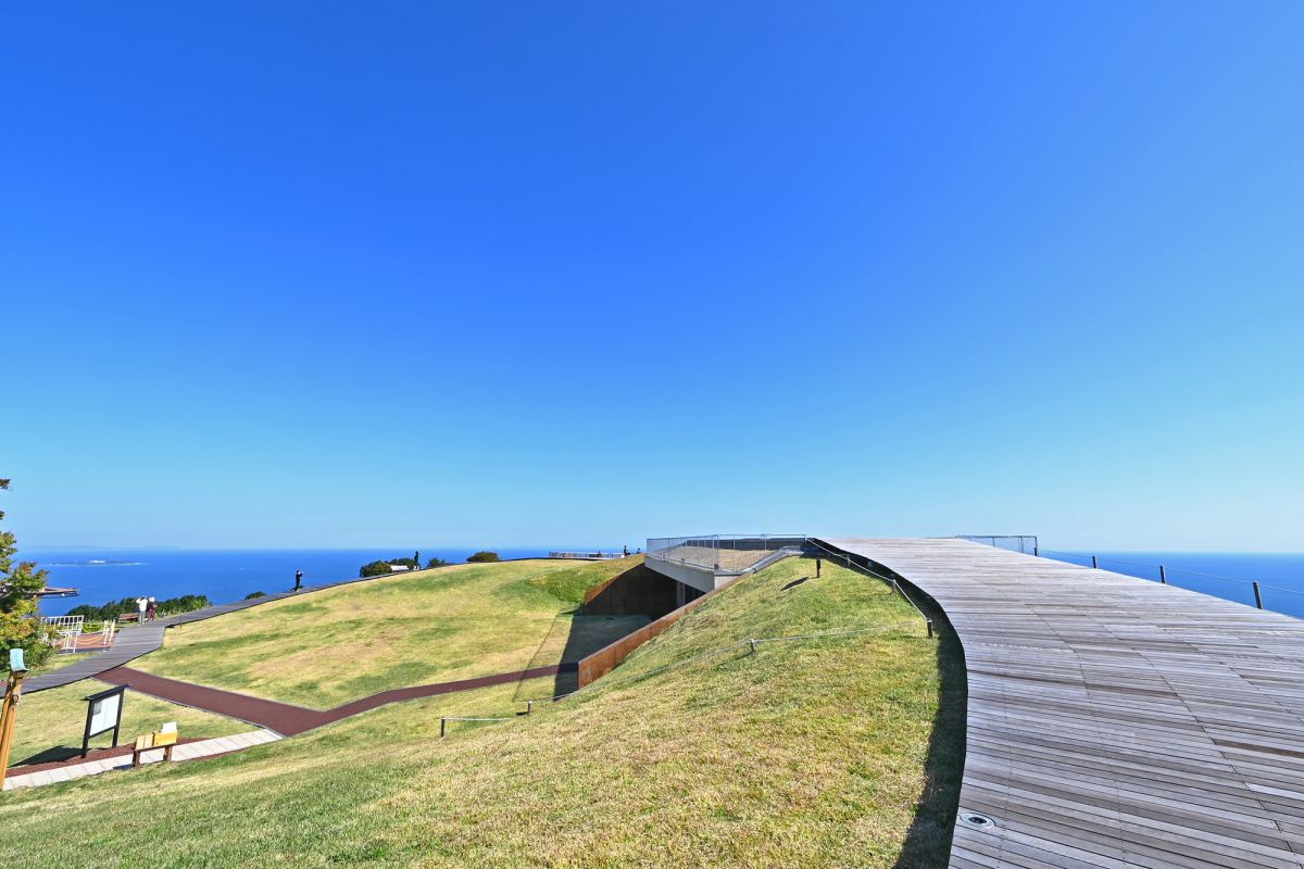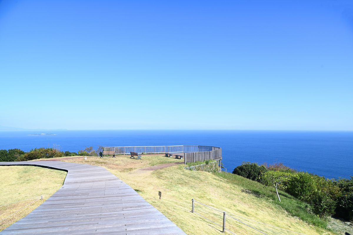 ボードウォークを歩きながら景色を見渡すと、雄大な太平洋に浮かぶ伊豆諸島や房総半島、天気が良ければ富士山や天城連山まで一望! 360°の大パノラマが広がります。
