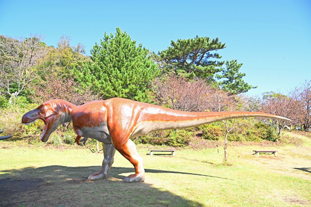 帰りはリフトで降りてもいいですが、歩いて下山することもできます。麓までの道中には、リアルな十数体もの恐竜オブジェが点在する「恐竜広場」があります。大型遊具もあるので、子どもは夢中になってしまうかも。