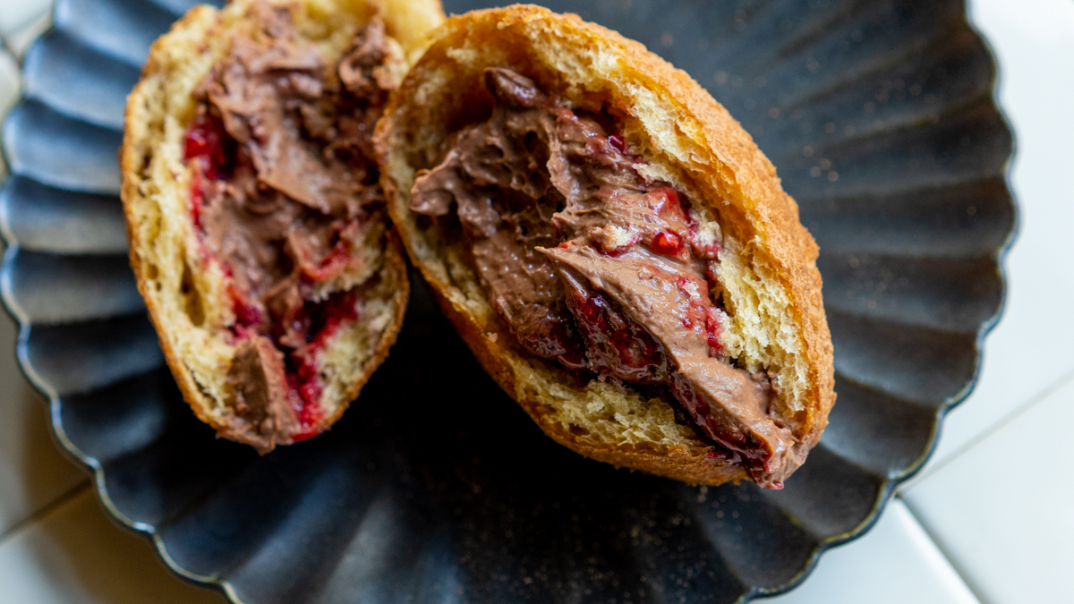 「アマゾンカカオのクリームドーナツ」500円は、大山さんのお店「ease」で大人気のシュークリームの妹的な存在。どちらも同じアマゾンカカオのクリームを使用しているそう。ドーナツには天然酵母で発酵させた生地を使用。上質なパーム油で軽やかに揚げています。