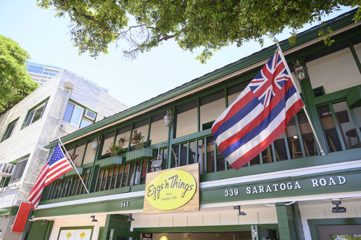 「エッグスン・シングス」は、1974年にオープンしたアメリカンレストラン。代名詞でもあるホイップマウンテンがのったパンケーキが人気ですが、もともと卵料理には定評があり、ロコモコもそのひとつです。