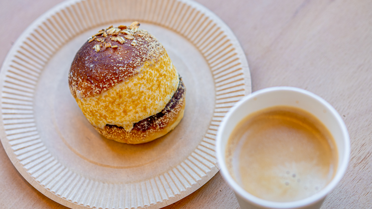 パリッとモッチリ、ふたつの食感が楽しめるバターロール生地は「北海道あずきと自家製サワーホイップ」380円にも使用されています。あんこの自然な甘さとサワークリームのさわやかな酸味が生地によくなじむ、満足度の高い味わいです。