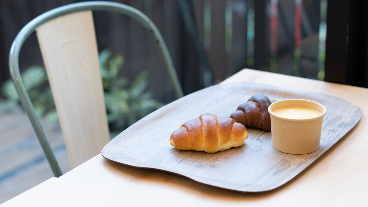 川沿いの心地よい風を感じるテラス席もあって、まさに至れり尽くせり。温かな「本日のスープ」280円とバターロールを味わいながら、優雅なひとときが過ごせました。基本的にはバターロール専門店ではありますが、それ以外のサービスも大充実。なんと月額1980円でコーヒー飲み放題というサブスクもあるとか!? 茅場町界隈で働いている方は要チェックですよ!