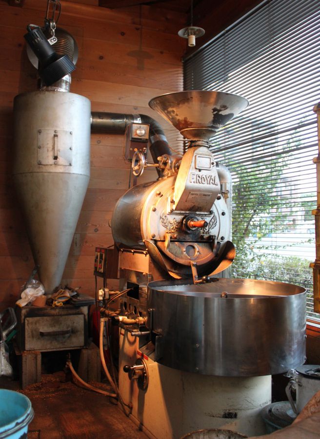 「中に入ってみますか?」と山本さん。木の扉を開けると、ふんわりと漂うコーヒーの香り。50年以上大切に使い込まれた大きな大きな焙煎機がどっしりと、その歴史を感じさせてくれました。
