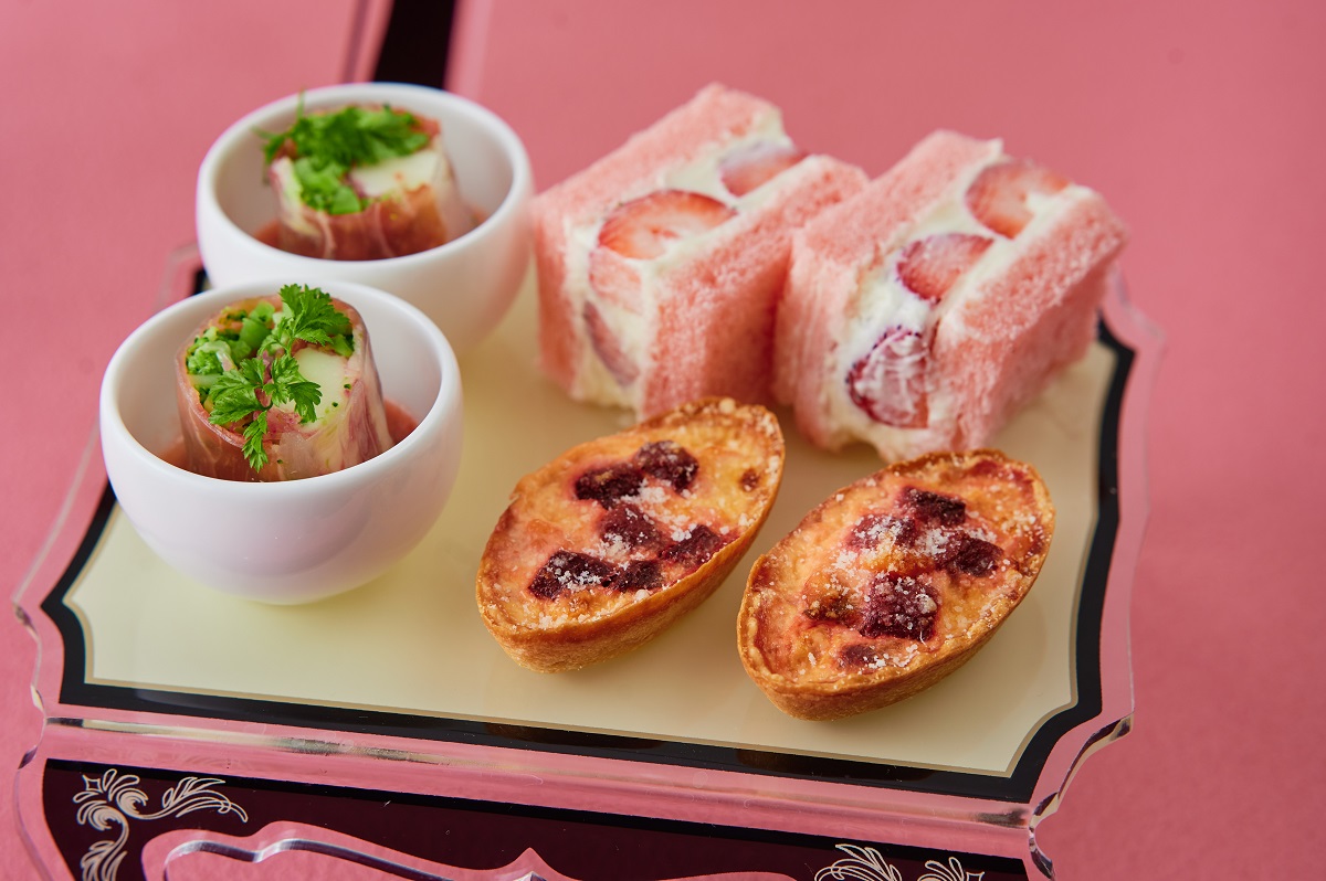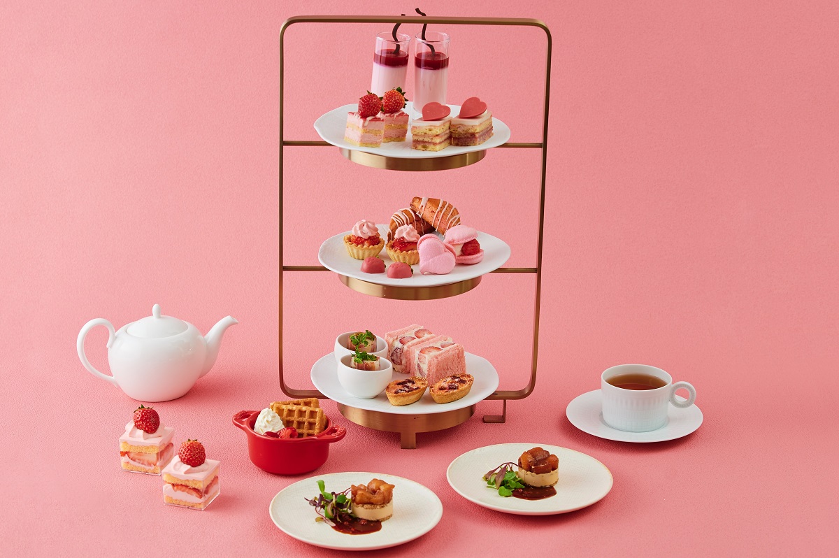 旬を迎えた完熟のいちごを贅沢に使用したアフタヌーンティーは、スイーツ&セイボリーもぜんぶピンク色!本場パリの星付きレストランで修行を積んだシェフ自慢のセイボリーとともに、さまざまなカタチでいちごの魅力がたっぷり味わえるスイーツが揃います。