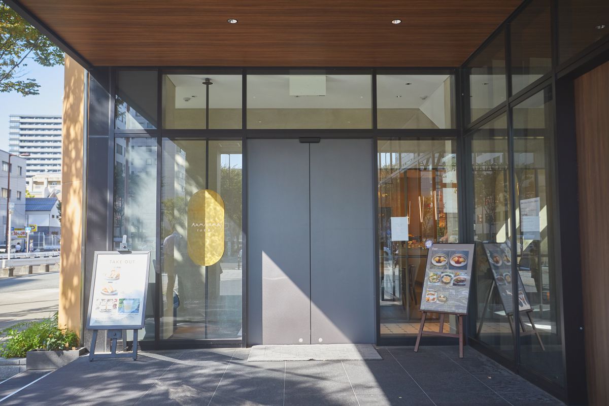 今回ご案内する「KAMIYAMA lobby」があるのは、大阪キタの中心梅田から扇町公園の方向に10分ほど歩いた扇町通り沿い、神山町の交差点の北東角。“神”の住所で、“神”の名の付いたブランド食材を多用する“神カフェ”です。