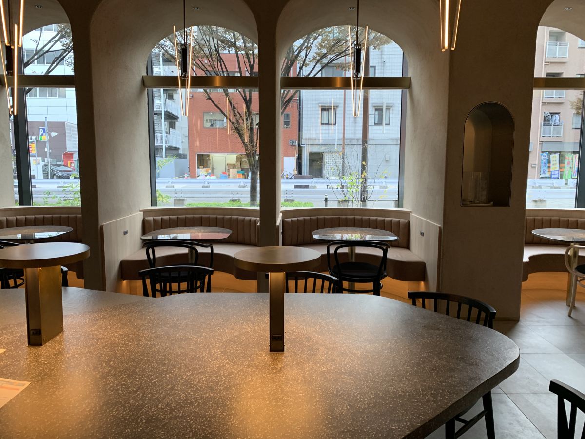 それが、一歩店内に足を踏み入れるとこの雰囲気。ミュージアムのウェルカムラウンジとしての役割も果たすカフェだけに内装もゴージャスです。