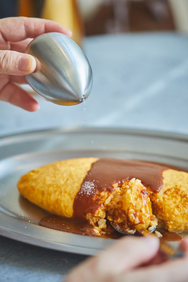 さて、こちら「KAMIYAMA lobby」の名物といえば、「ヲムライス」。見た目は普通のオムライスですよね?