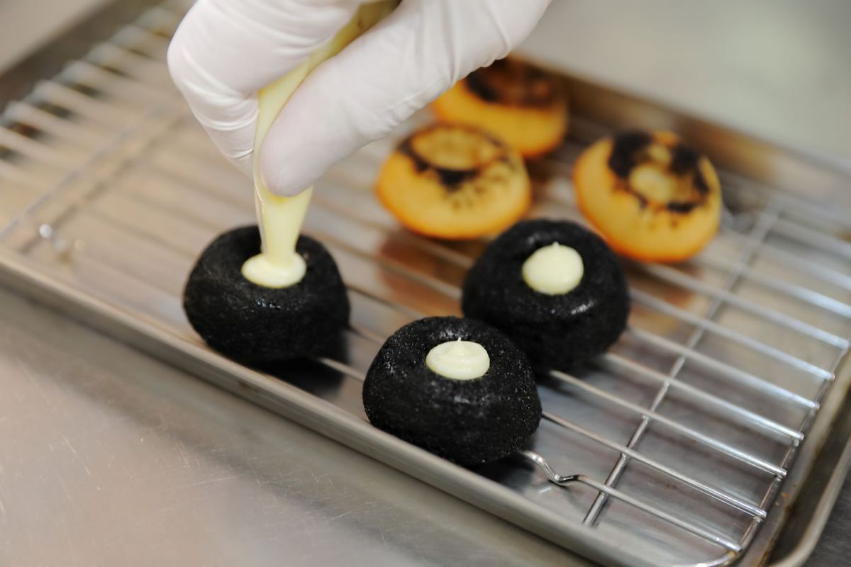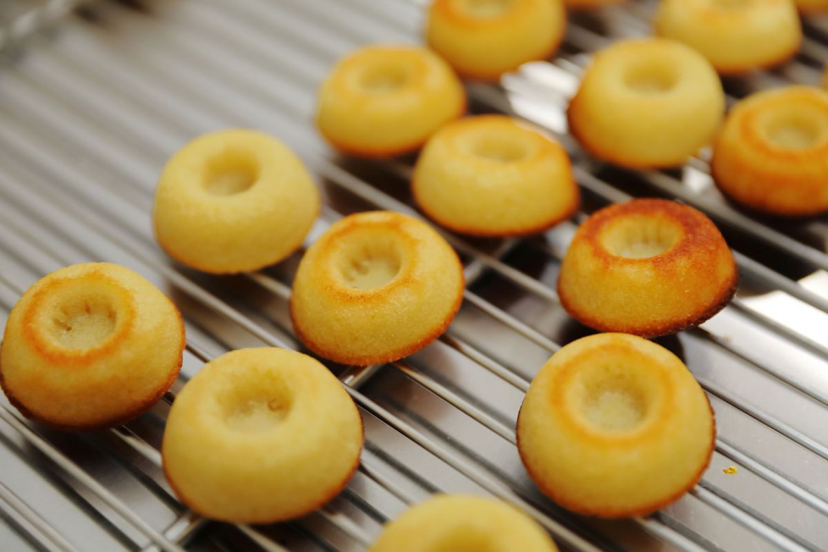 実はこれ、トッピング用のくぼみだそう。トッピングはそれぞれの生地によって異なり、フレーバーに合うクリームやジャムなどをこのくぼみにアレンジしていきます。