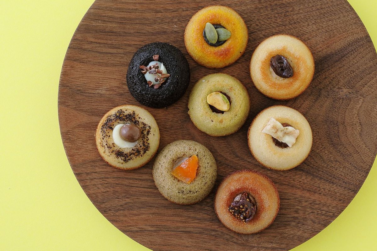 「フィナンシェ」は全部で8種。うち定番は4種(レーズンバター、ブラックミルクとココア、ピスタチオとチェリー、塩キャラメルとバナナチップ)。さらに、2カ月ごとに変わる季節限定が4種あります。訪れた10月はかぼちゃと黒ゴマ、ティラミス、ほうじ茶とあんぽ柿、ドライイチヂクと赤ワインの4種でした。