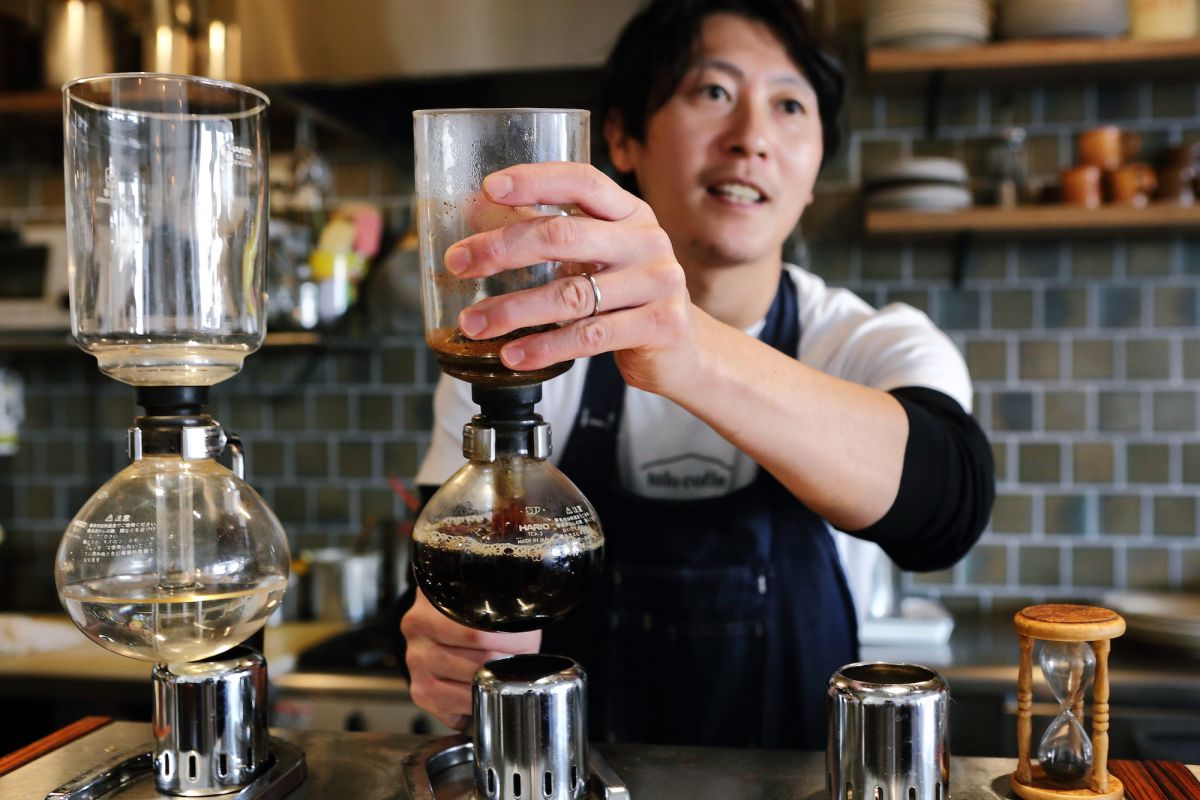 そして屋号に入るコーヒーは、毎日でも飲める、飲みやすい味になるようにブレンド。サイフォンで丁寧に淹れます。本当に飲みやすくて、家でも飲みたくなる味。(コーヒー豆も販売しています)