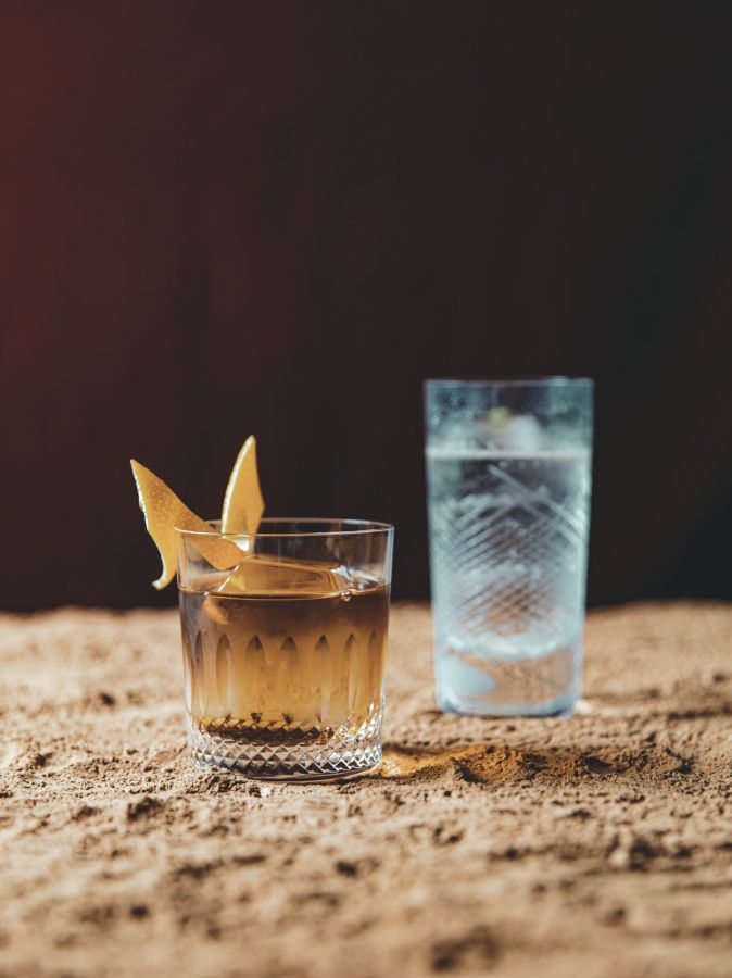 チョコレートのニュアンスをもつダークラムとカカオビターやカカオティーシロップを合わせ、自家製チョコレートクッキーの“香水”を振りかけた、チョコレート好きにはたまらないスイートカクテル。