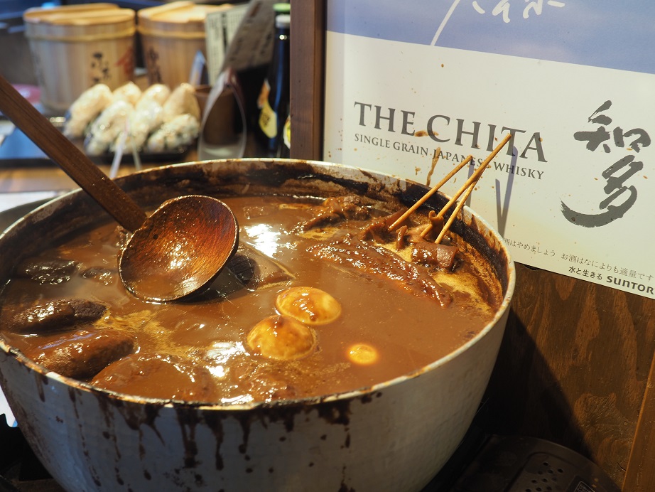さて、店に入ると大きな鍋で味噌おでんがグツグツと煮込まれているのが目に入り、シズル感満点です。