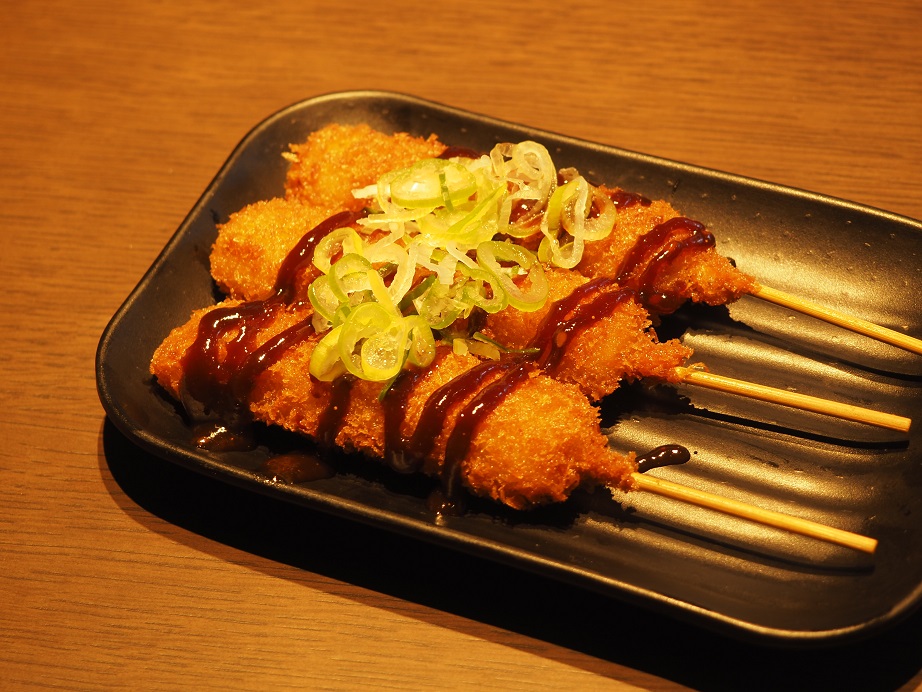 もうひとつ、名古屋の酒場の定番といえる味噌串カツ(3本418円)は、甘めの味噌との相性がいい逸品で、こちらもおすすめです。