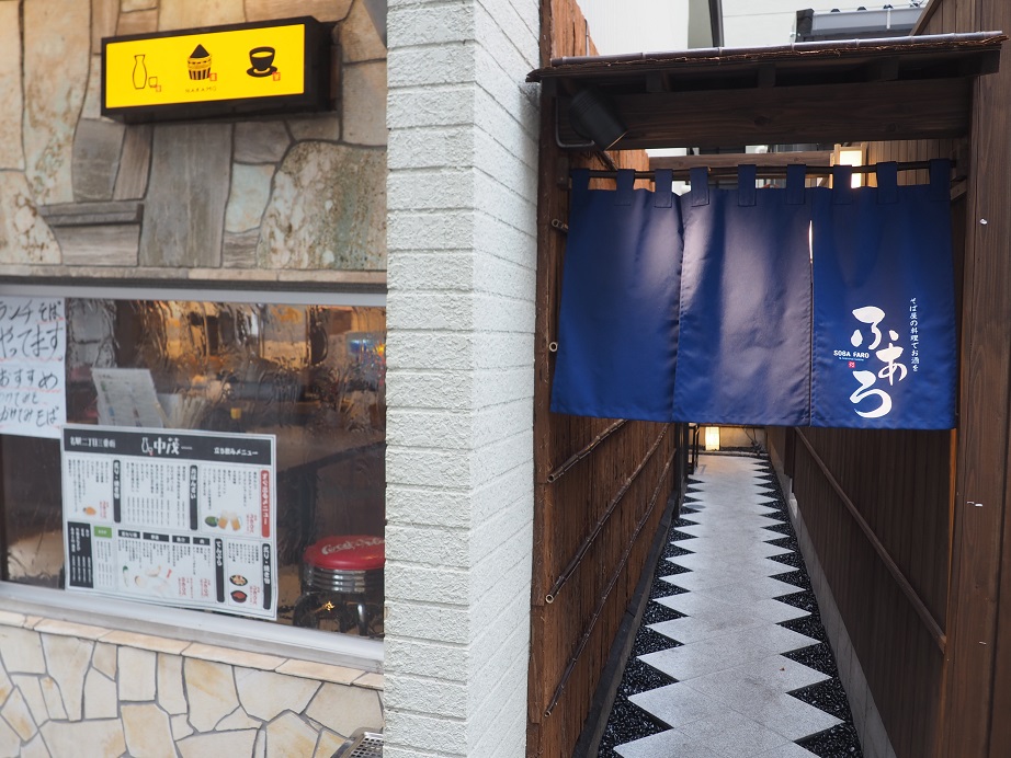 「名駅二丁目三番街」にあり、「立ち飲み 中茂」と隣接する「そば屋の料理でお酒を ふあろ」では、「挽きたて・打ちた て・茹でたて」の「三たて」にこだわった、二八そばを味わえます。石臼引きなので風味、食感も抜群。