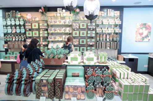 パイナップルの形のクッキーでおなじみのクッキーブランド。上質なバターを使用し、サクッとした歯ごたえが旅行者の中でも圧倒的な人気を得ています。常時14種のフレーバーがあるほか、シーズン限定品など豊富なパッケージが並んでいます。