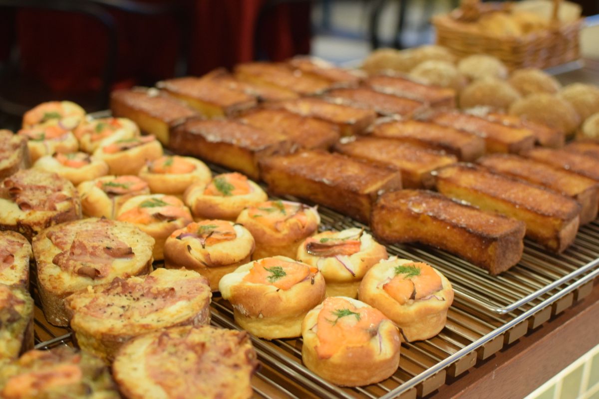 パン以外にもイートインメニューを豊富に展開していることも「パンとエスプレッソと堺筋倶楽部」の特徴です。特に注目すべきは限定のアフタヌーンティーセット。クロワッサンのサンドやカヌレなど、「パンエス」の人気メニューを集めた豪華なラインナップを堪能できます。外観を模してステンドグラスを取り入れた、特製のスタンドも要チェック!