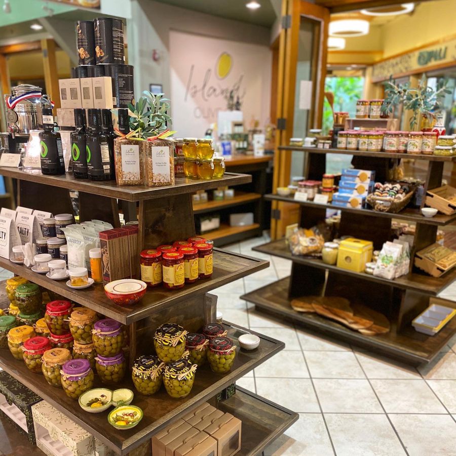 「アイランド・オリーブオイル・カンパニー」では高品質のオイル、調味料などのグルメ食品を販売。ハワイで唯一の認定オリーブオイルソムリエが選んだ、最高品質で新鮮なエクストラバージンオリーブオイルとバルサミコ酢は看板商品で、現在は50種類以上の商品を取り揃えています。