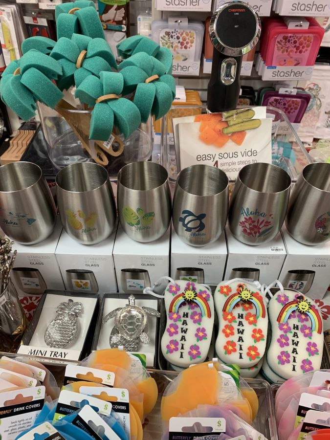 ハワイアンローカルにも愛されている「ザ・コンプリート・キッチン」では、アメリカならではの実用的でポップなデザインのキッチン用品が所狭しと並んでいます。見ているだけでもお料理が楽しくなりそうなアイテムがいっぱいで、ついつい長居してしまいそうです。