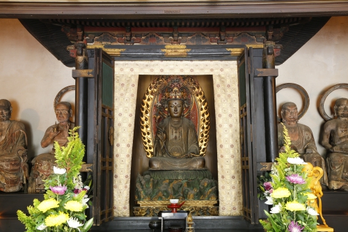 仏殿の須弥壇には、運慶作と伝わる阿弥陀・釈迦・弥勒の三尊仏が安置されています。現在・過去・未来の三世にわたって幸福へ導いてくれるのだそうですよ。