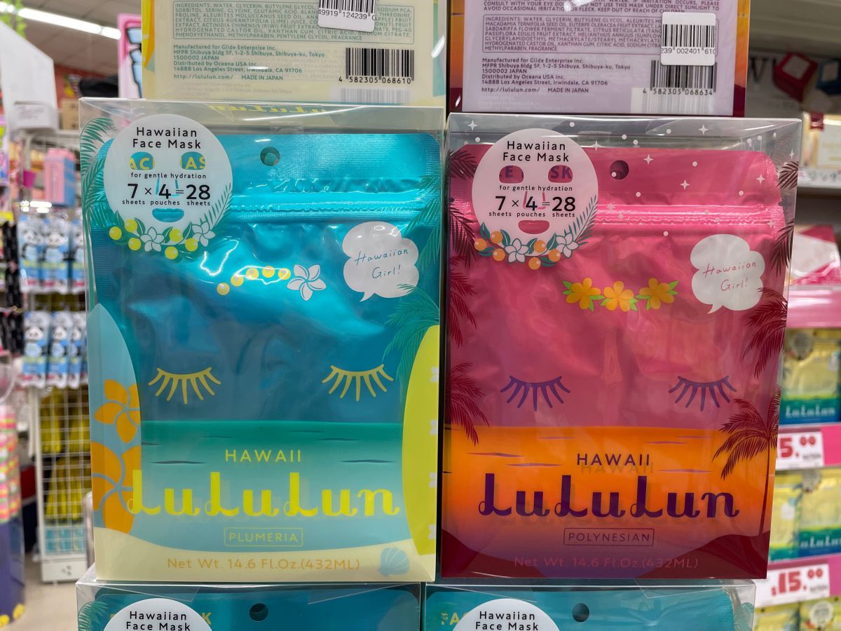 ハワイ限定の「ルルルン・フェイスマスク」$19.99は、プルメリアとポリネシアンの香りがあります。ハワイ産の天然成分を配合し、お肌に栄養と活力を与え、定期的に使用すると保湿力が高まり、美容液の吸収が促進されます。各箱には4枚のパウチが入っており、それぞれ7枚、合計28枚のフェイスマスクが入っています!