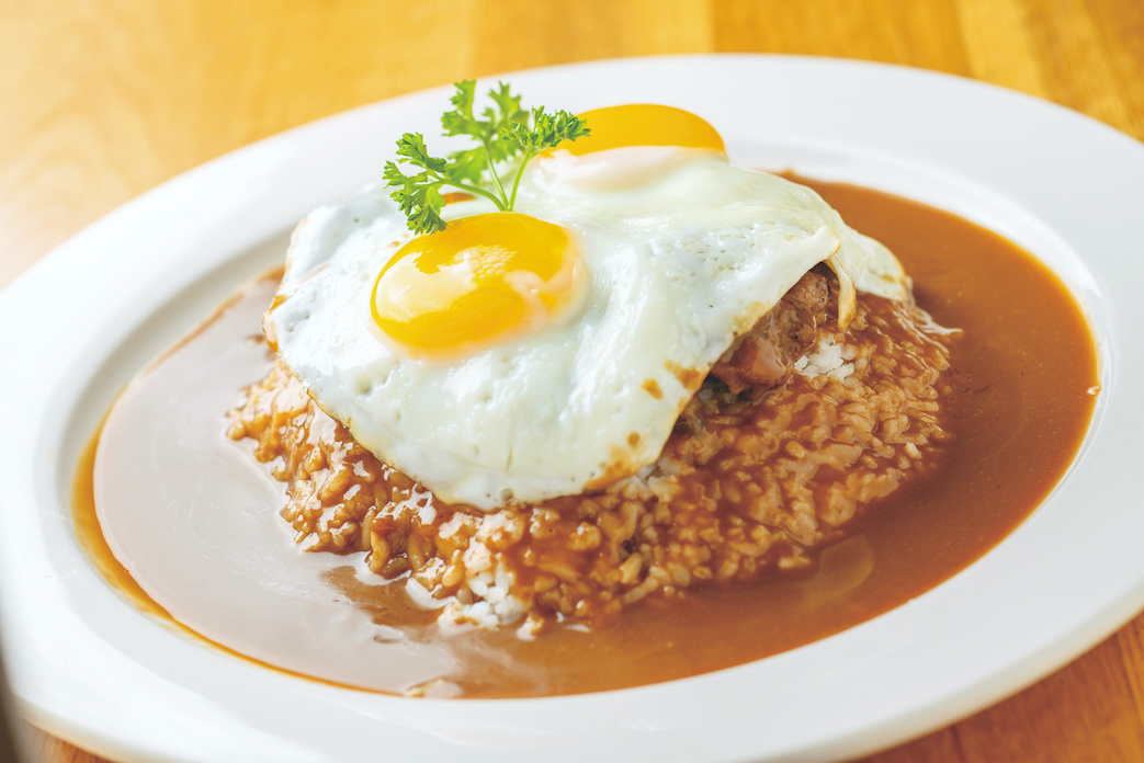 ハワイの伝統的なファストフードといえば、そう、ロコモコ!ハワイで絶対に食べておきたいメニューのひとつです。ライスの上にグレービーソースがかかったハンバーグをのせ、その上に目玉焼きがオン、というのが基本形。目玉焼きをくずしてごはんやソースと一緒に混ぜ合わせて食べるのがハワイ流です。一見シンプルな組み合わせかと思いきや、実は店によってさまざまなアレンジがあるので、お気に入りの一皿を探してみて。