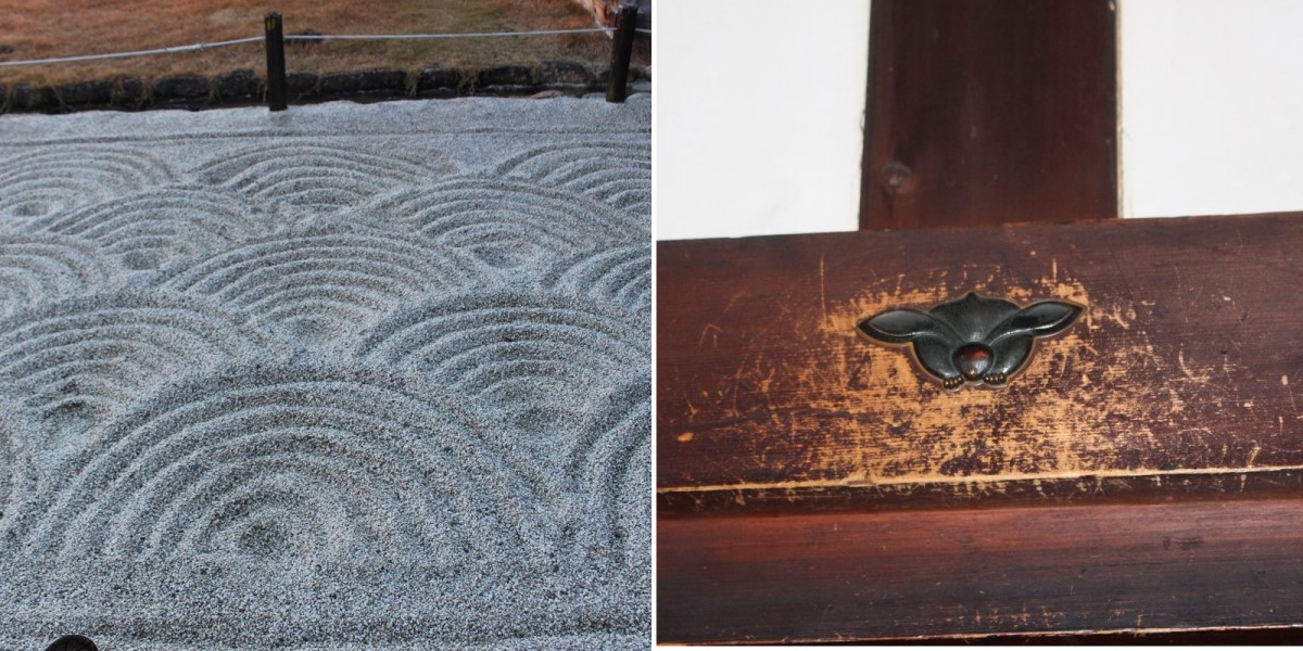 入り口前の砂利の模様(青海波)や、建物内にいくつもある真向兎の釘隠しなど、細かいところも楽しめますよ。