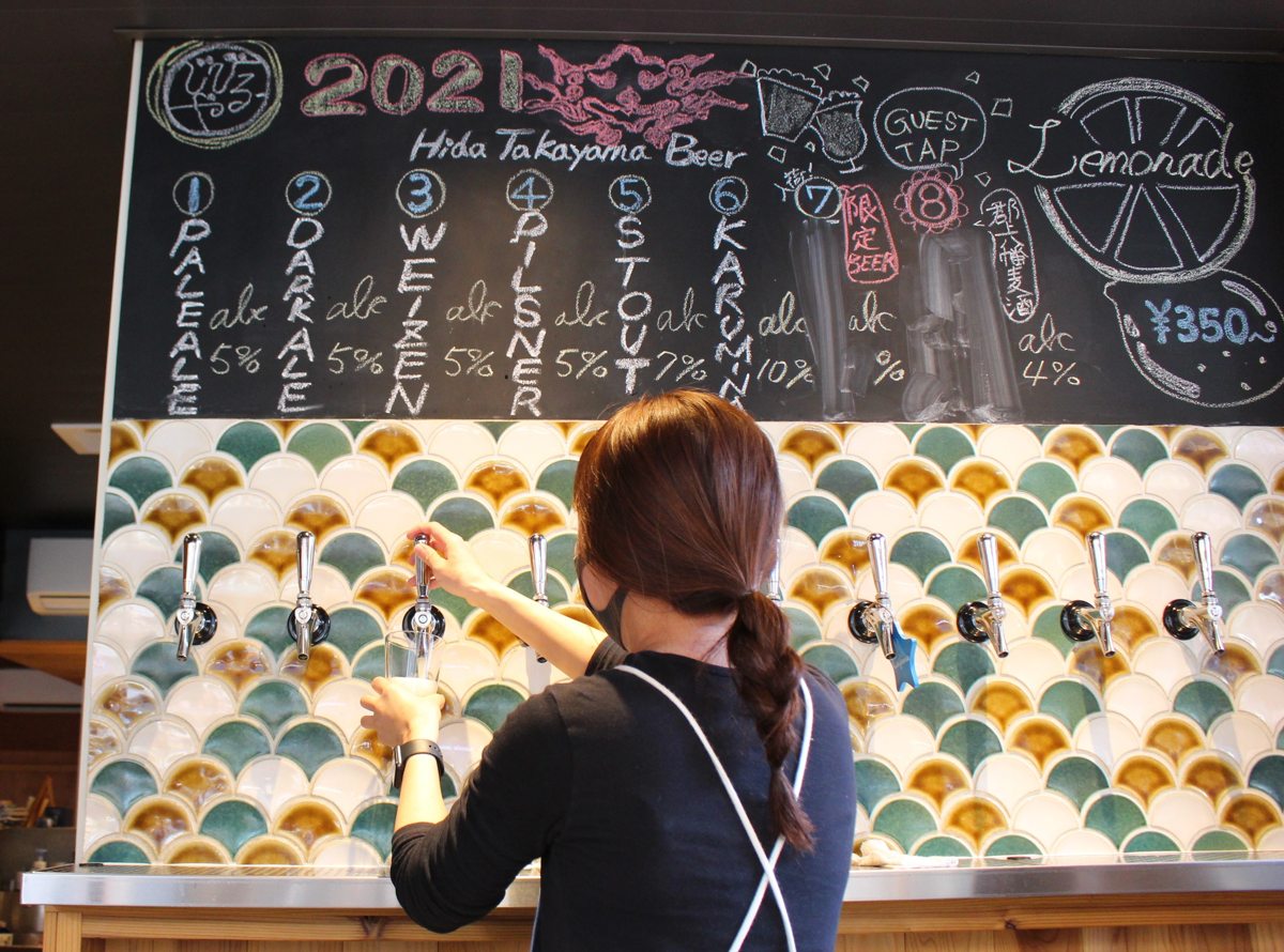 飛騨高山の地下水と麦芽100%で造られるクラフトビールが飲めるのがココ。ビールだけでなく、フレッシュな自家製レモネードやバナナジュースも人気なんです。