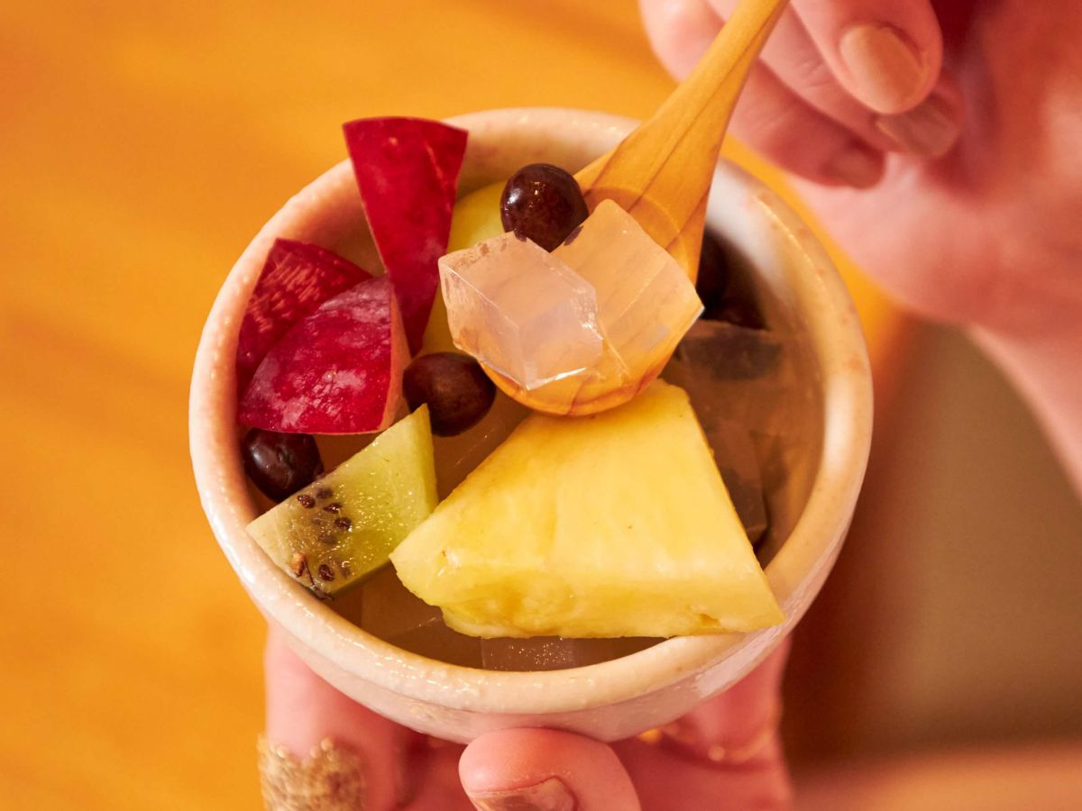 みつまめに使われている自家製の寒天は、伊豆諸島・神津島産の最高級の天草を天然水で煮だして作るこだわりの品。プリッとした歯ごたえと、磯の香りがたまらない♪