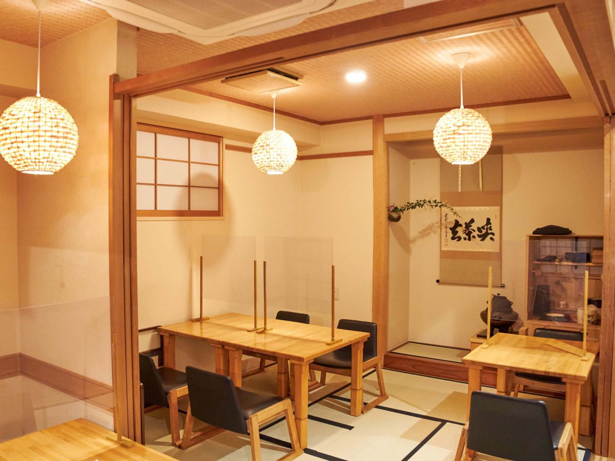 店内にはカウンター席のほか、小上がりのテーブル席もあります。写真のこの空間は、実際に茶室として使っているそうで、定期的に茶道教室も開催しているのだとか。2000円前後で茶道体験ができるそうなので、気になる人はお問い合わせを!