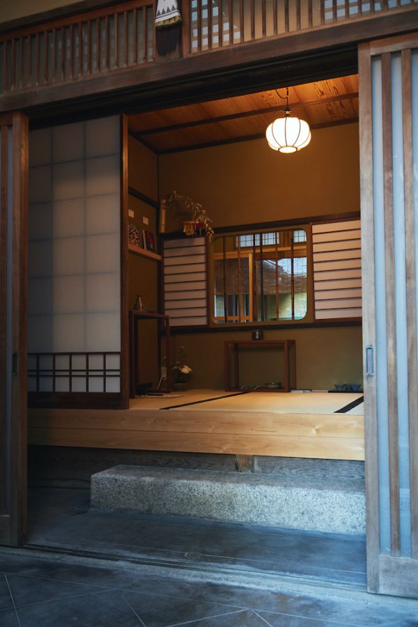 格子度をくぐり、細い路地を奥に進むと、昔ながらの趣がそのまま残る古民家の入り口へ。