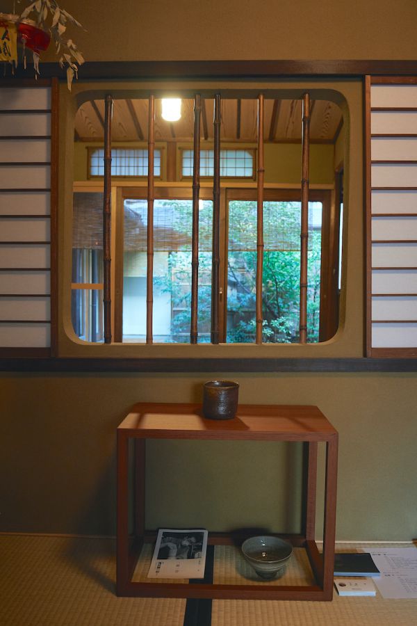 上り框(あがりがまち)で靴を脱いで、店内へ。玄関には、その日展示されている作品の作家さんの案内が置かれ、開かれた窓からは坪庭の緑がおもてなししてくれます。