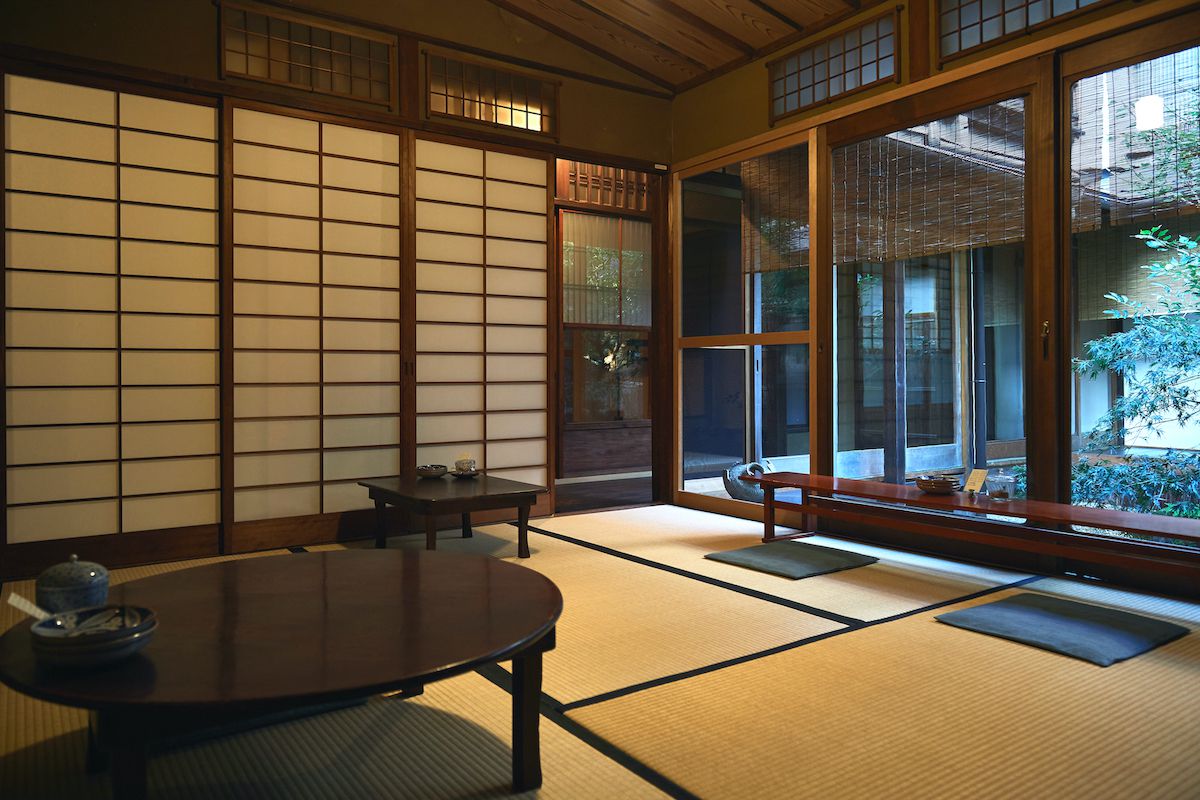 こちらの建物は、もともとは悉皆屋(しっかいや)といって、着物の染めや洗い張りをする商家だったそう。その広い敷地の真ん中にある坪庭に面した手前の和室が喫茶スペース。